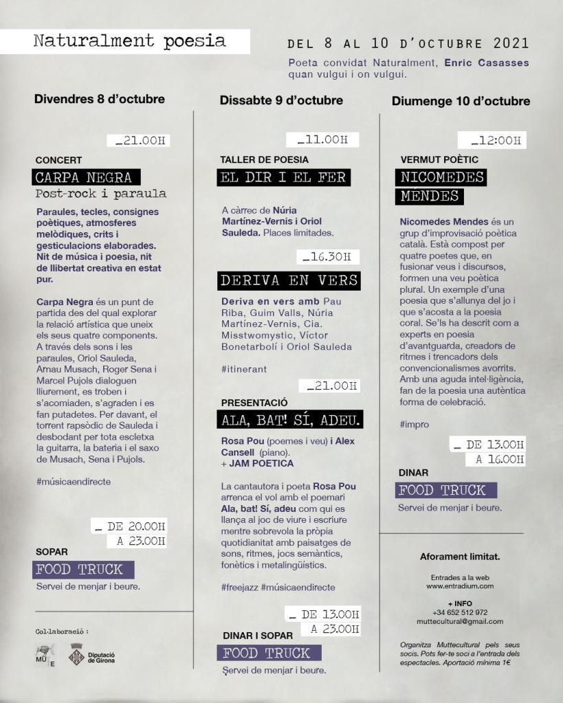 Dissabte, 9 d’octubre a les 11’30h la Cia.Misstwo_Mystic participem amb el nostre espectacle “!Asalto al Paraíso!” al festival de poesia que se celebrarà al Konvent de Pontós (Alt Empordà).