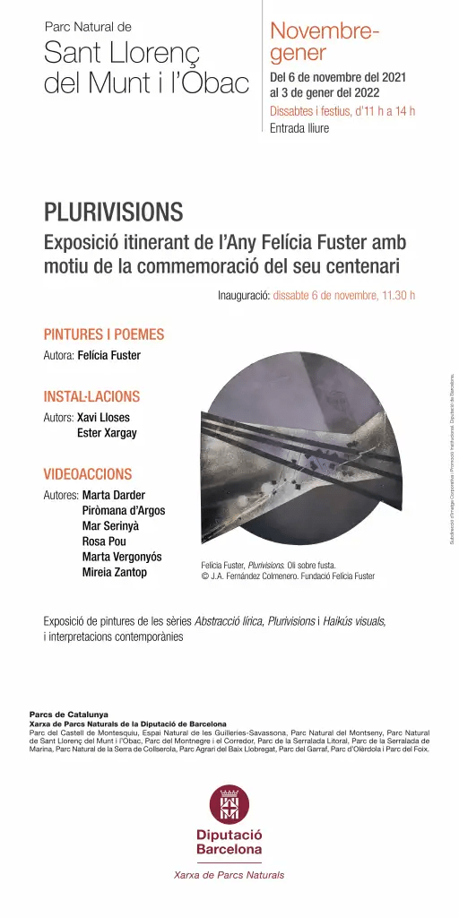 En aquesta exposició col·lectiva a La Pahissa del Marquet i a cura de l’Ester Xargay, aporto material de recerca gràfic i plàstic per a la concepció de la performance on dialogo amb la pintura núm. 42 de la sèrie PLURIVISIONS de FELÍCIA FUSTER, la peça de videoacció SI MANEM NO MAMEM (2021) i dues fotoaccions on es reflecteix el diàleg amb la peça als interiors del Marquet de Les Roques i en col·laboració amb el fotògraf Adolf Alcañiz. La inauguració serà EL 06/11/2021 i es podrà visitar fins el 03/01/2022.