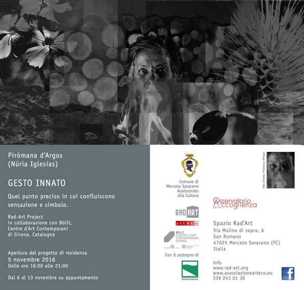Projecte de recerca artística becat per Bòlit-Centre d’Art Contemporani de Girona amb residència a Rad’Art Project-Assoaciazioni Artéco (San Romano, Itàlia) el 2016.