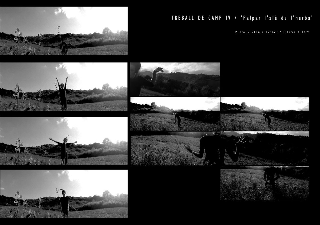 Aquesta pràctica es basa en les trobades amb qui treballo. Quan arribo a la residència porto a terme una cartografia de sensació; una espècie de memòria gestual a partir de la que desenvolupo un relat: